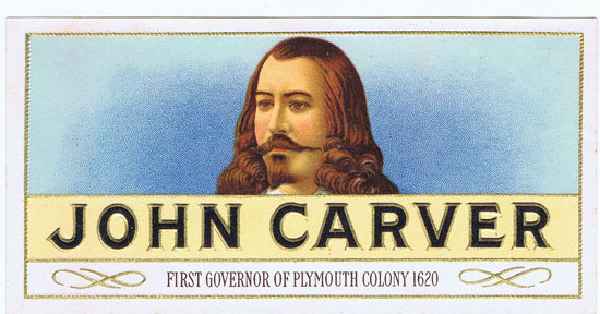 Manufactured in Tampa for Cleveland Oh market. John Carver was born in Nottinghamshire, England 1576 and died in Mass. Bay Colony 1621. He was a wealthy London merchant but went to Leiden, Netherlands because of religious persecution. In September 1620 he along with 101 other colonists set sail from Plymouth, England. He signed the Mayflower Compact on November 11, 1620, and on the same day was elected to a one-year term as governor. Before arriving in the New World he signed the Mayflower charter and was elected for 1 year as the colonies first governor.